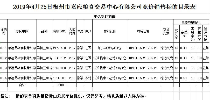 交易時間和地點:20194月25日(星期四)上午10。廣東省梅州市彬芳大道南161號梅州市糧食交易中心3樓。