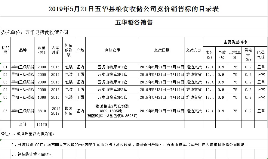 2019年5月21日廣東省五華縣糧食收儲公司稻谷銷售