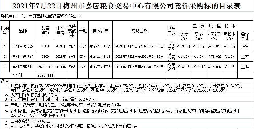 2021年7月22日興寧市齊昌糧油儲(chǔ)備管理有限公司糧食競(jìng)價(jià)采購(gòu)交易公告