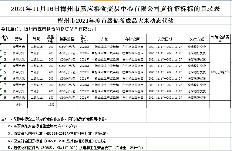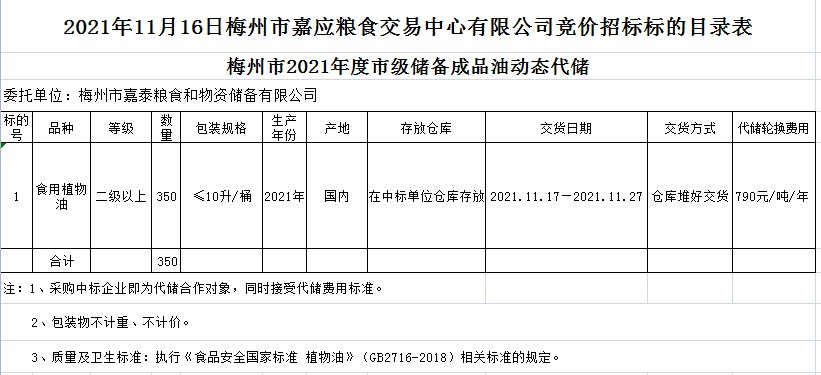 梅州市2021年度市級(jí)儲(chǔ)備成品糧油動(dòng)態(tài)代儲(chǔ)及包干輪換費(fèi)用公開招投標(biāo)公告