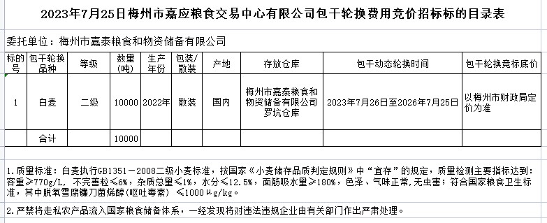 2023年7月25日梅州市2023年度市級(jí)儲(chǔ)備糧包干輪換公開招投標(biāo)公告