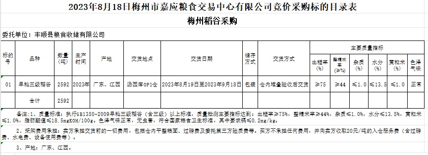 文件下載:2023年8月18日豐順縣糧食收儲(chǔ)有限公司稻谷采購