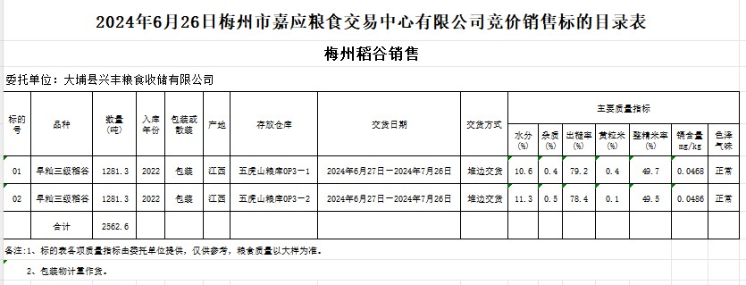 2024年6月26日大埔縣興豐糧食收儲(chǔ)有限公司稻谷銷售