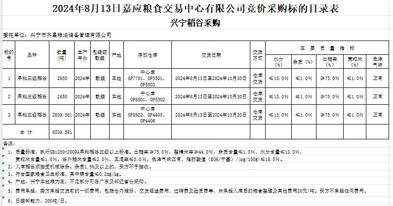 受客戶委托,梅州市嘉應(yīng)糧食交易中心有限公司定于2024年8月13日(星期二)舉辦糧食競價交易會。興寧市齊昌糧油儲備管理有限公司擬采購2024年產(chǎn)早秈稻8539.581噸。