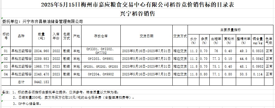 2025年5月15日興寧市齊昌糧油儲備管理有限公司稻谷銷售