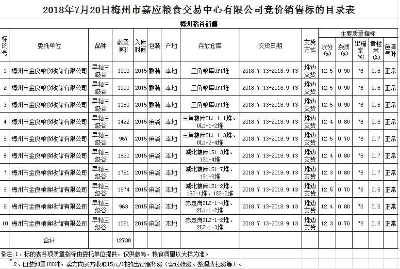 2018年7月20日梅州市金良糧食收儲(chǔ)有限公司稻谷銷(xiāo)售